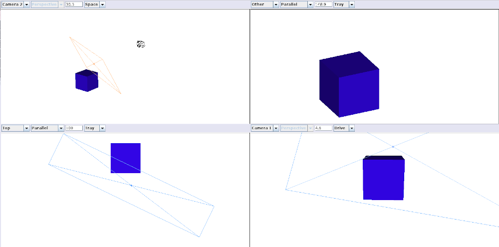 If the view that is being moved is Perspective Projection, it’s frustrum will display as a four sided pyramid, with the tip at the viewpoint.